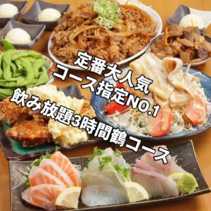 3時間飲み放題付きで、名物から豪快な〆までしっかり楽しめるコース。