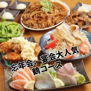 京橋でコース宴会なら、まずは鶴コースから。